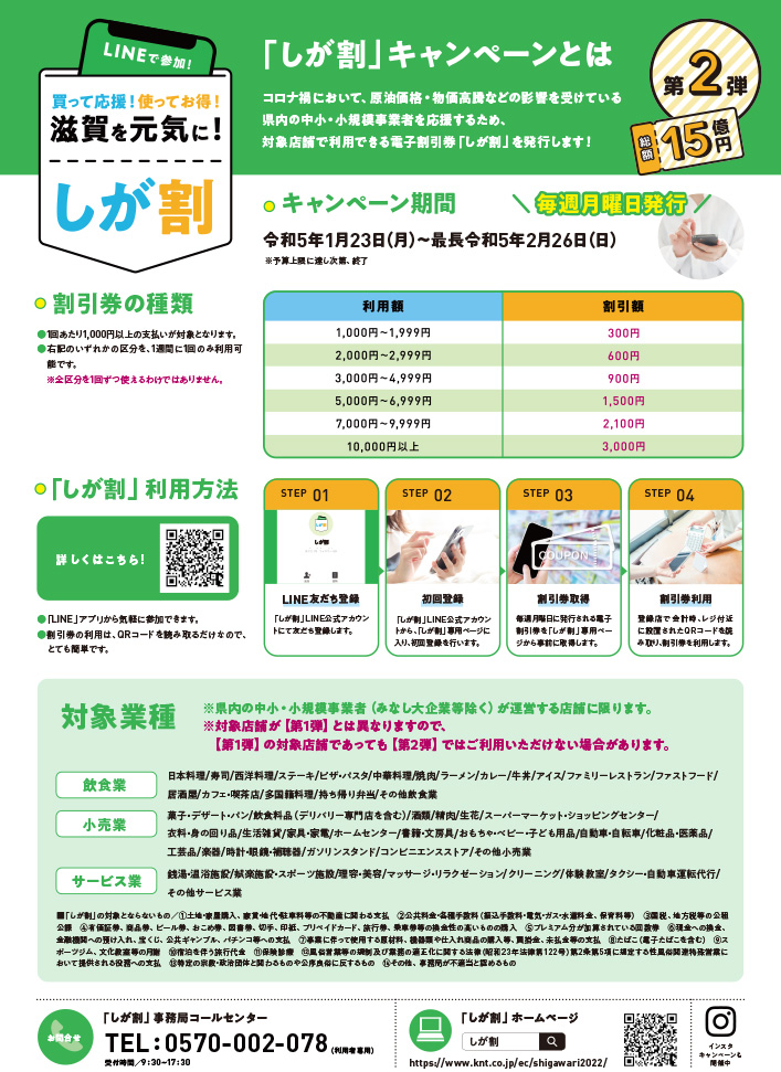 ご予定のあるお客さまは是非しが割を取得しておいてくださいね♪