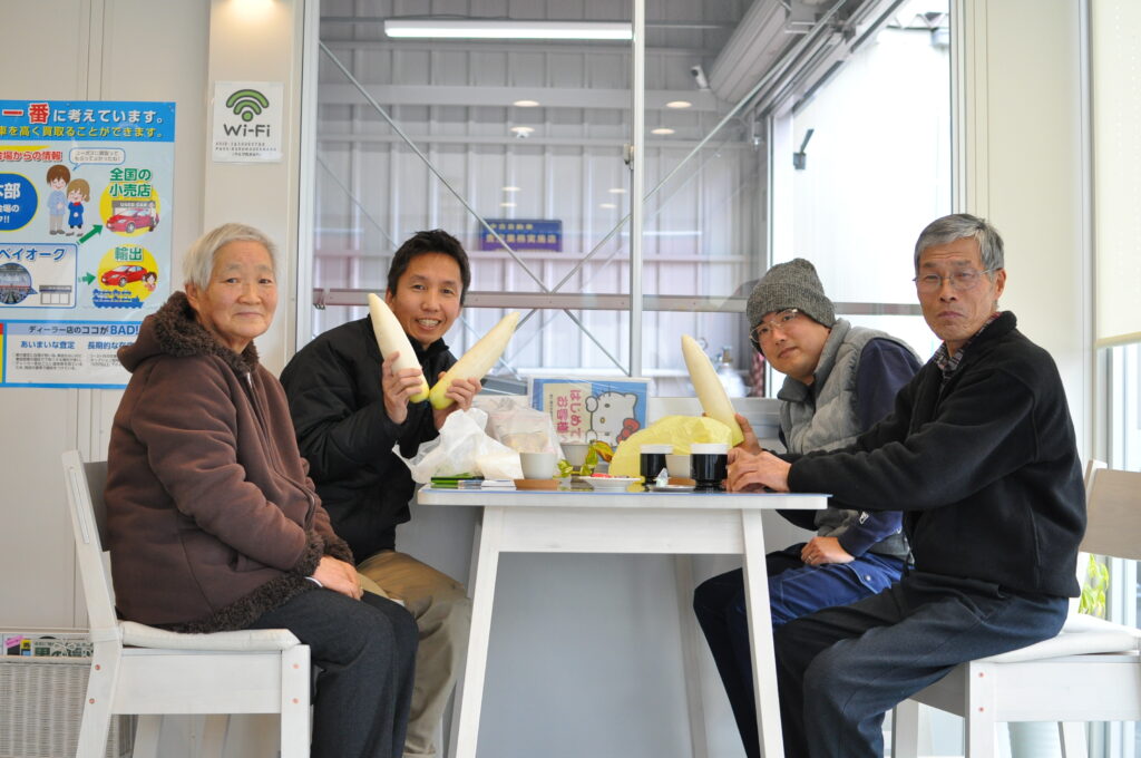 実際に車の買い取りをきっかけにお客様の困りごとの相談にのりお手伝いした事で、今では親戚のように思ってくださり「これ食べー」と頻繁に畑でとれた野菜を届けてくださるお客さまもいらっしゃいます。